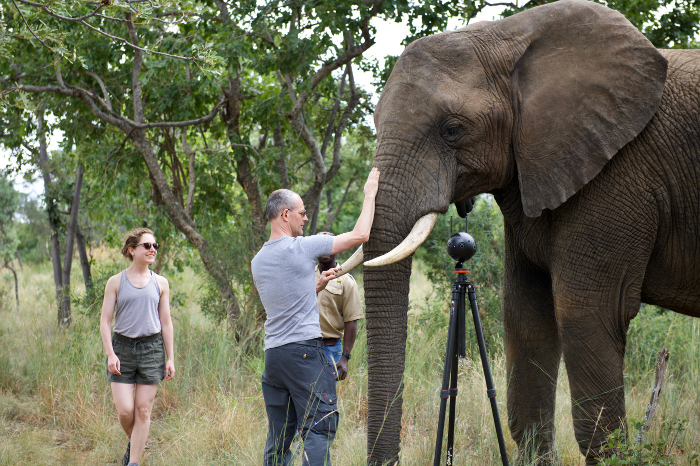 Paule Dagenais, Michel Milinkovitch and one of the elephants used in this study, Bela Bela, South Africa.